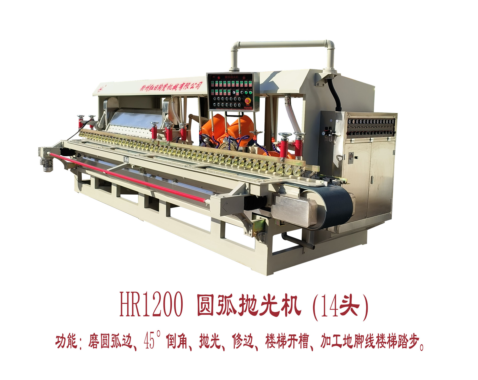 紅日牌HR-1200型圓弧拋光機(jī),是我廠近年來(lái)結(jié)合市場(chǎng)上各種型號(hào)的圓弧機(jī)優(yōu)缺點(diǎn)而改進(jìn)設(shè)計(jì)生產(chǎn)的一種新型瓷磚加工設(shè)備。該機(jī) 結(jié)構(gòu)牢固可靠,由于在大軸、搖擺機(jī)構(gòu)、拋光磨頭及機(jī)械手部件等關(guān)鍵部位均采用了進(jìn)口的高質(zhì)量軸承,致使整機(jī)各部件運(yùn)轉(zhuǎn)平穩(wěn)、剛性好、搖擺位置精確、噪音 低。該機(jī)可對(duì)任何級(jí)別的拋光磚、石材進(jìn)行圓弧面或45度斜面加工,使其成為靚麗的階梯磚和地腳線,生產(chǎn)過(guò)程全自動(dòng),操作簡(jiǎn)便,且加工成本極低,用于裝飾工程效果極佳。